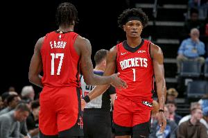 体育资讯4月17日讯 火箭球员阿门当地时间周四接受媒体采访。